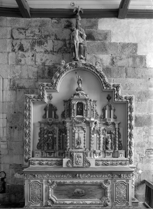 Autel, retable, tabernacle (autel secondaire, retable cadre, tabernacle à ailes), dit de la pitié du père, église Paroissiale Saint Hernin (Locarn),