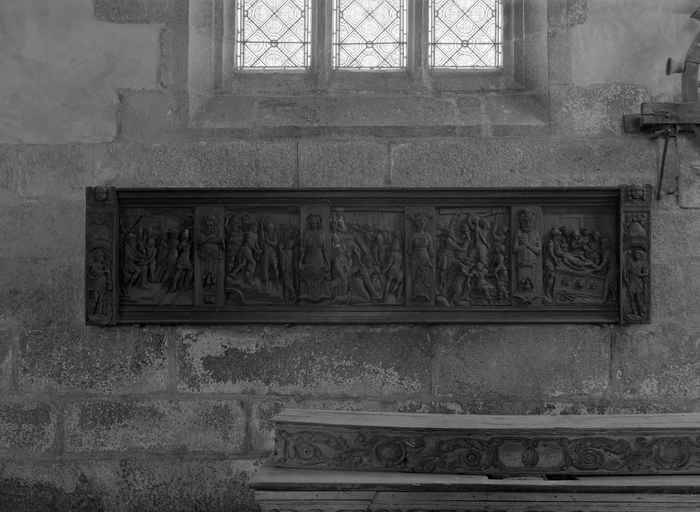 Chaire à prêcher : Passion, église Paroissiale Saint Hernin (Locarn),