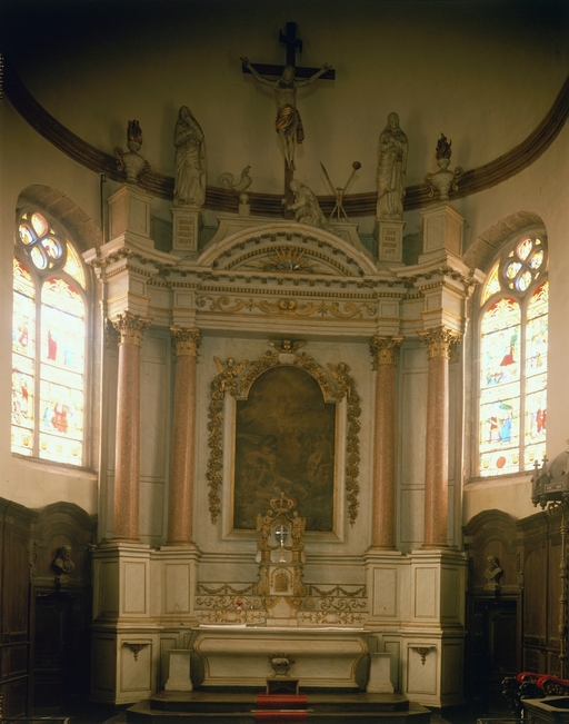 Vue d'ensemble maître autel, retable et table de communionImmatriculation