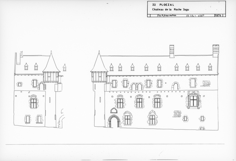 Élévation antérieure côté cour, relevé par photogrammétrie, 1974Immatriculation