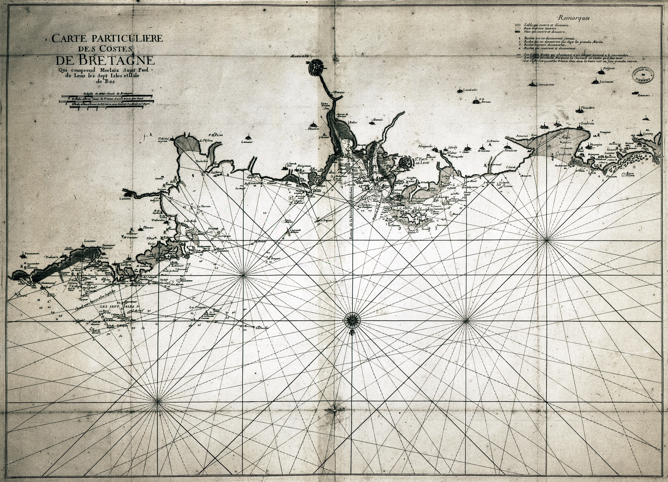 Carte des côtes et routes maritimes : Roscoff, Morlaix, 7 îles, Saint Pol de Léon, Ile de Batz.Immatriculation