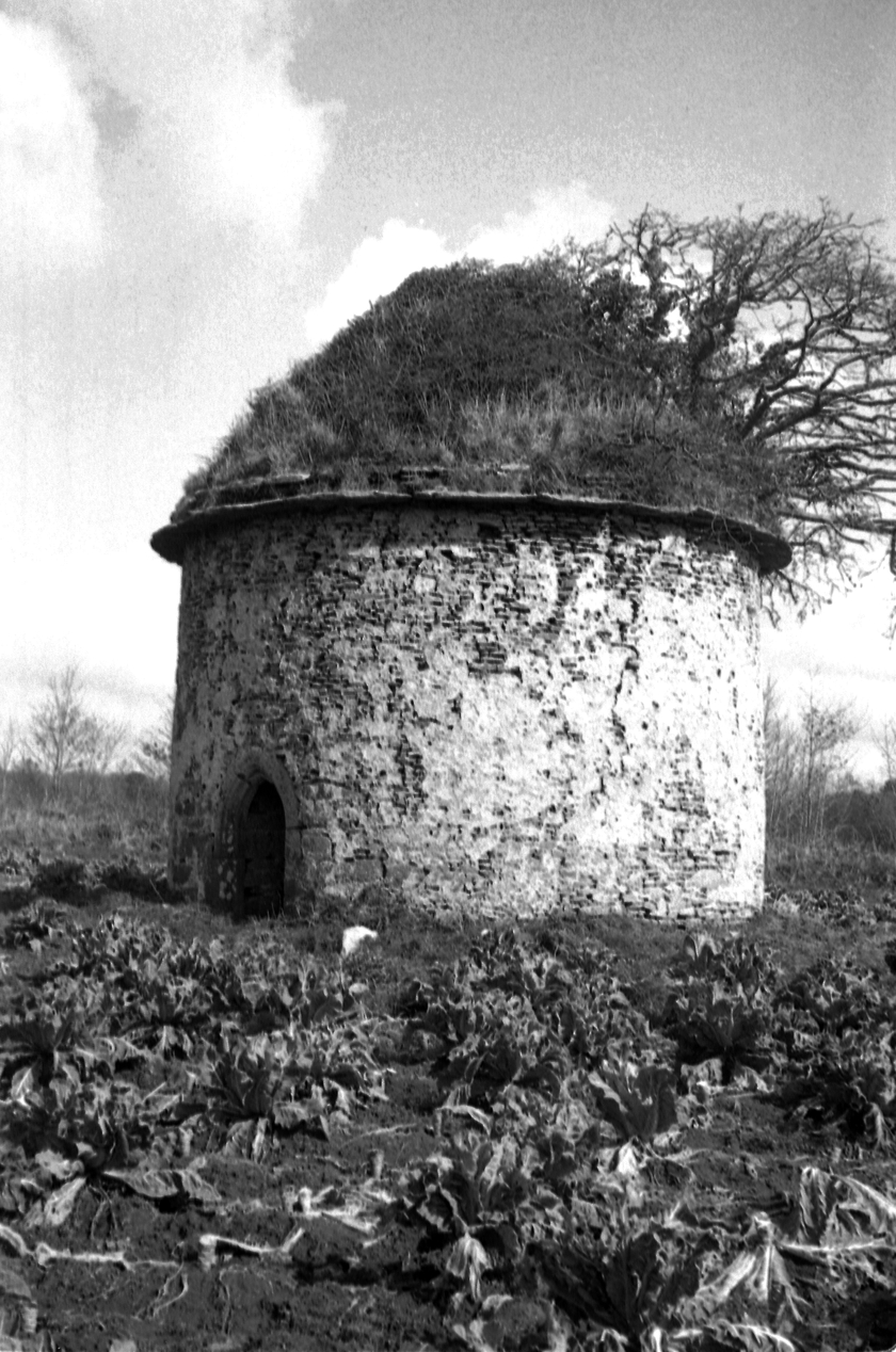 Vue générale du colombier situé au nord de l'avenue menant au château (état en 1986). Sa porte est en arc briséImmatriculation