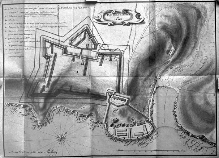 Plouzané : plan de la batterie de Léon dit fort du Mingant, à Brest par Mollart, le 30 novembre 1696, Service Historique de l'Armée de Terre, VincennesImmatriculation