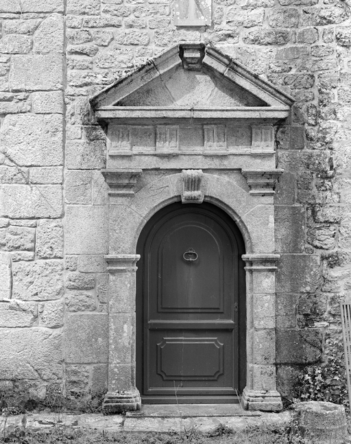 Logis abbatial, élévation sud, détail de la porte. (1983)Immatriculation