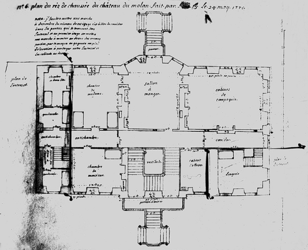 Plan du rez-de-chaussée du château, projet par le commandeur de Brilhac, le 24 mai 1775Immatriculation