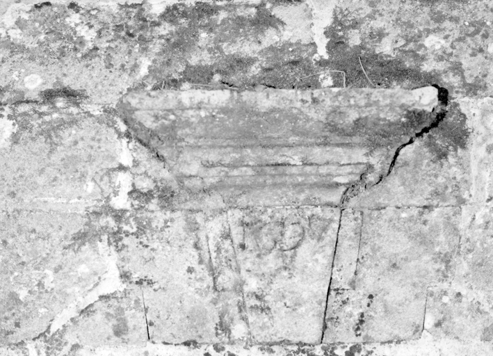 Colombier, détail pierre datée 1697.Immatriculation