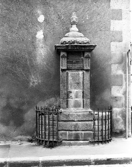 Vue de la porte Saint-Guillaume à Saint-Pol-de-Léon : pilier et plaqueImmatriculation