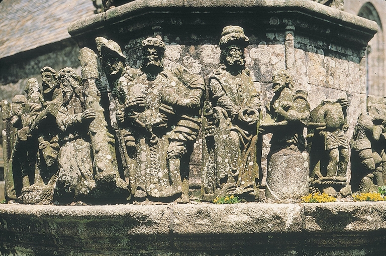 Calvaire, détail des personnages, portement de croix et arrestation.Immatriculation