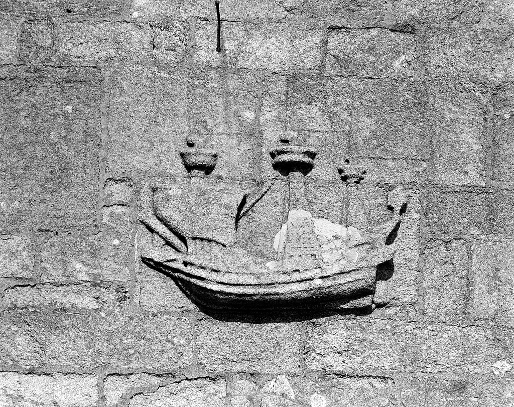 Pignon ouest, détail du bateau sculptéImmatriculation
