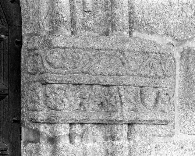 Porte ouest, vue de détail du bandeau sculpté de droite.Immatriculation