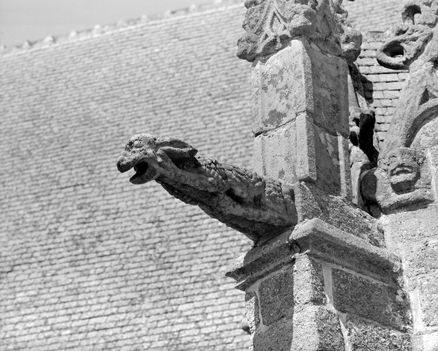 Elévation sud, vue de détail de gargouille.Immatriculation