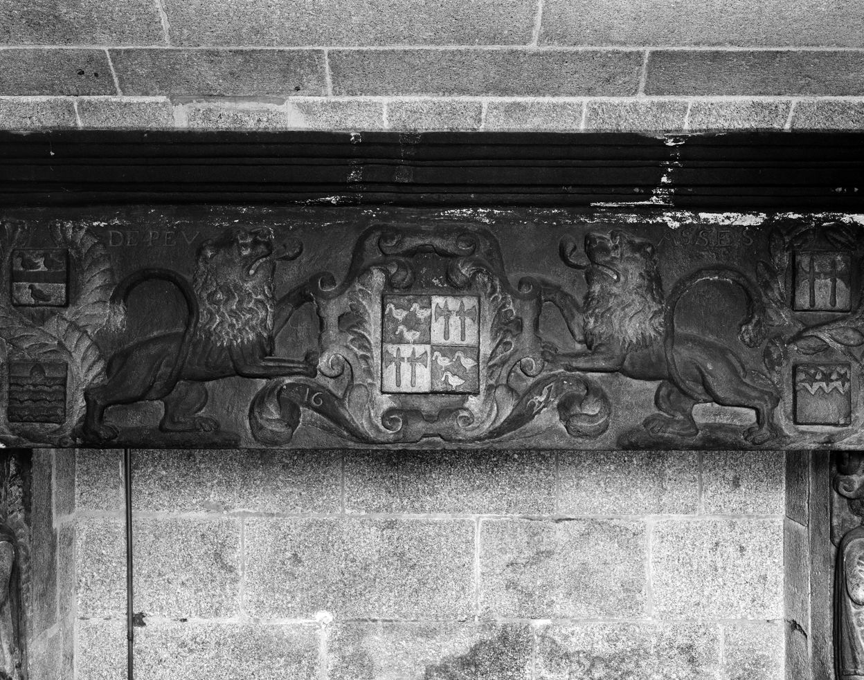 Intérieur, cuisine, cheminée 1627, détail du linteau de la cheminéeImmatriculation