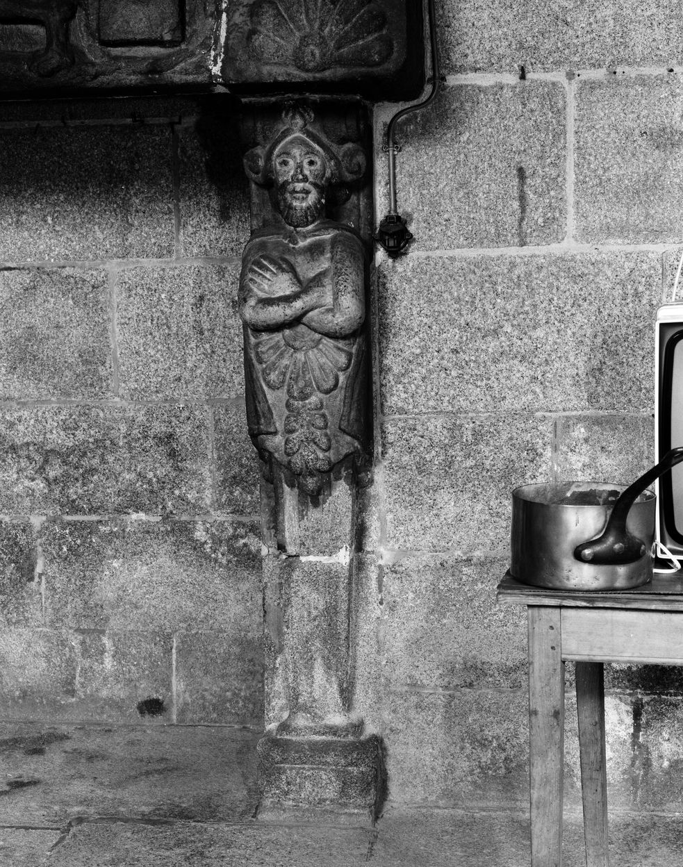 Intérieur, cuisine, cheminée 1627 au sous-sol, détail piédroit (homme)Immatriculation