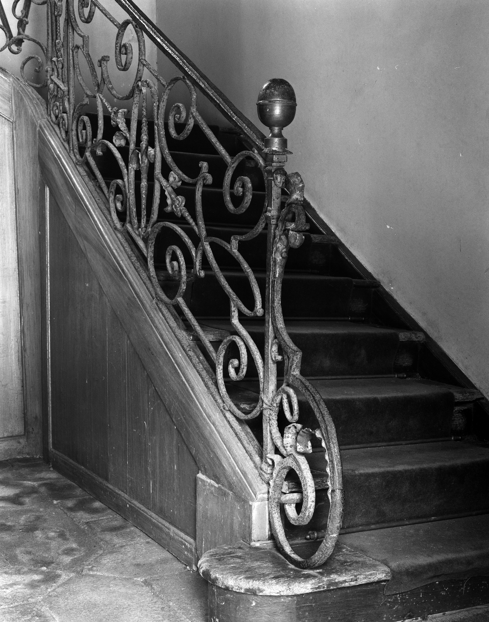 Logis, rez-de-chaussée, rampe d'escalier, détail.Immatriculation