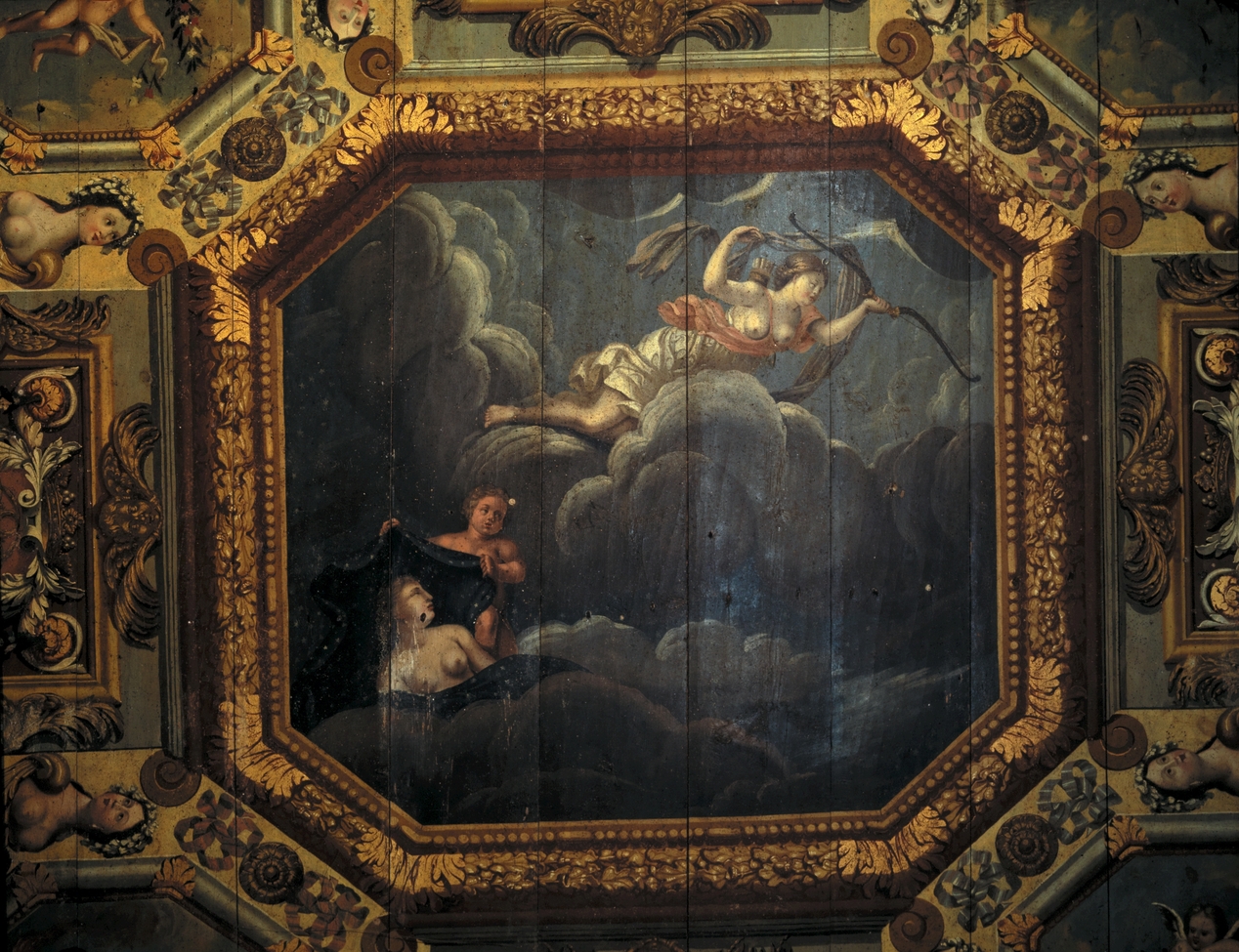 Plafond peint, détail scène centraleImmatriculation