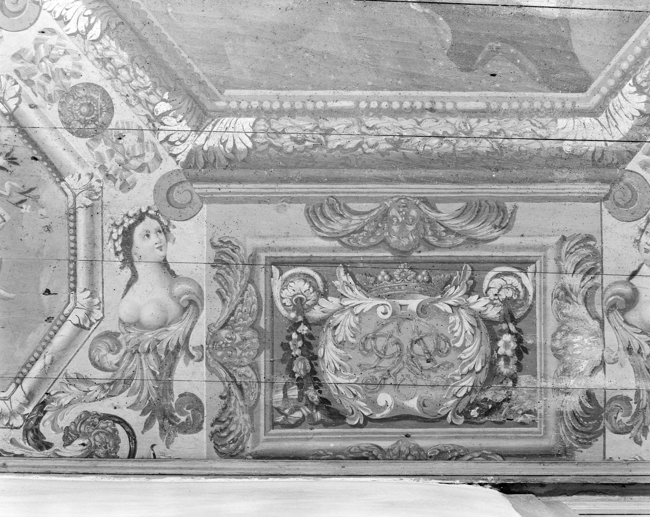 Plafond peint, détail avec monogrammeImmatriculation