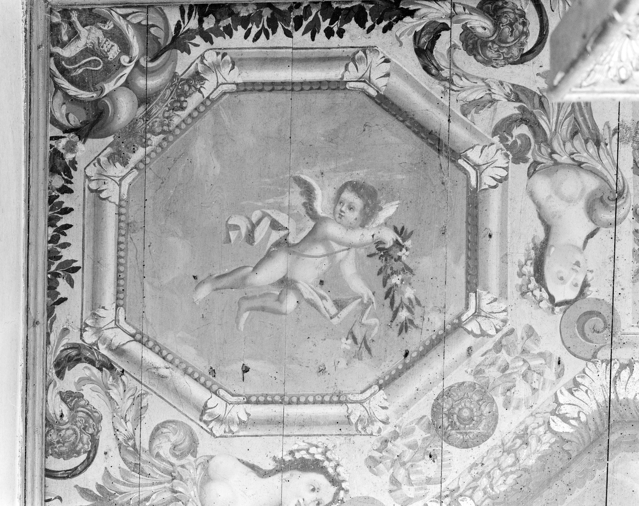 Plafond peint, détail panneau avec angelot AImmatriculation