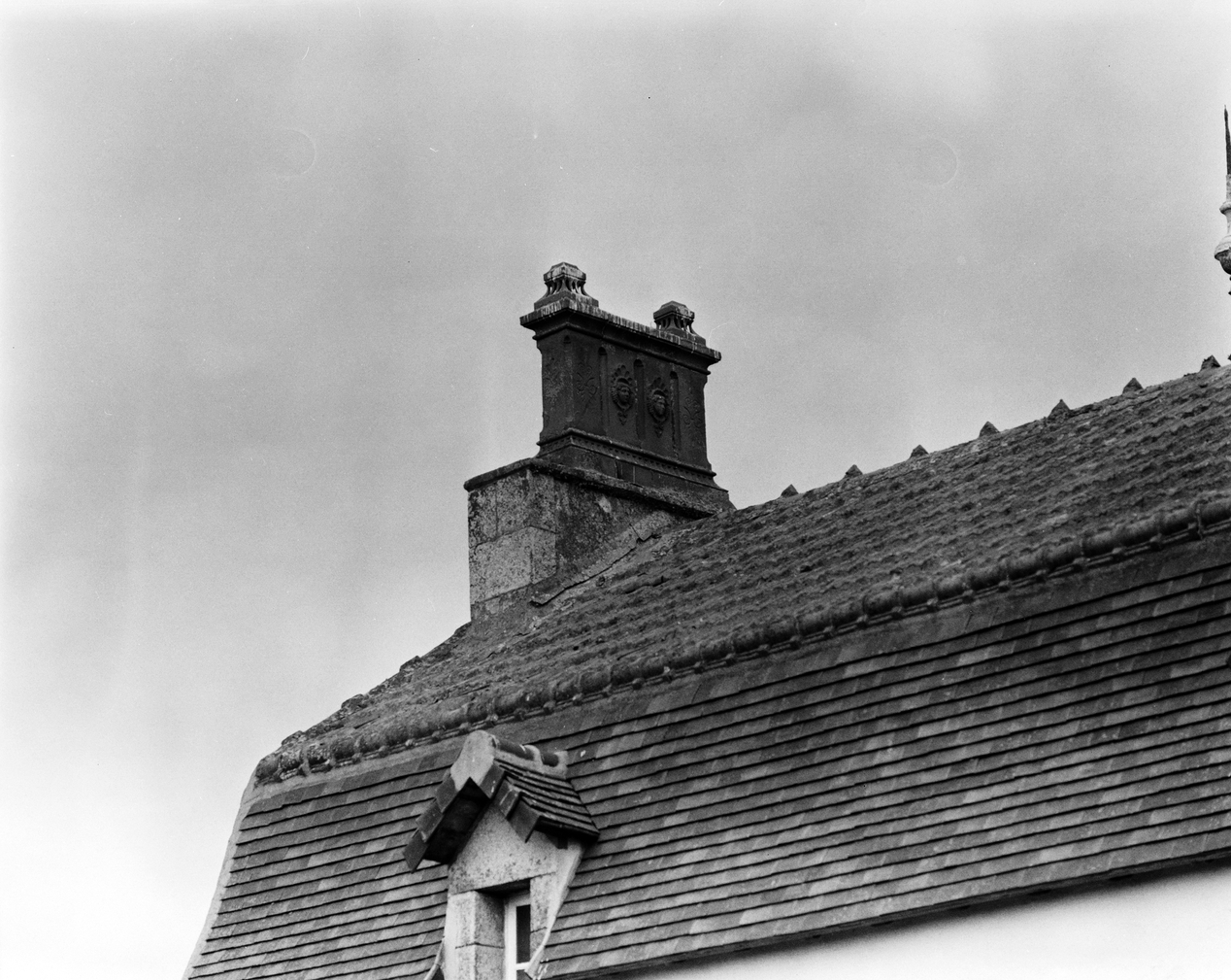 Bâtiment ouest, vue de détail de la couverture et de la souche de cheminéeImmatriculation