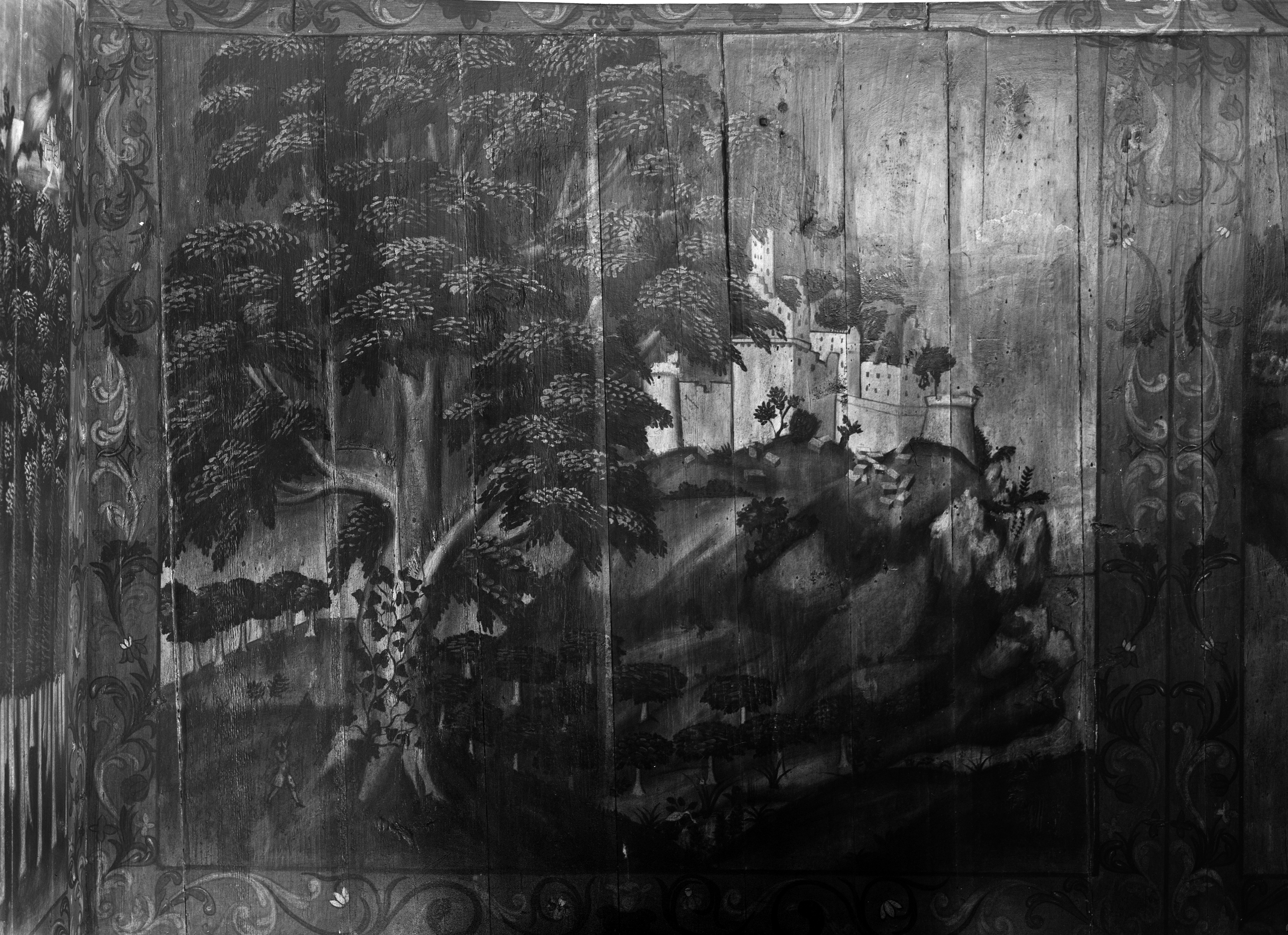 Peintures sur bois, panneau B (enceinte fortifiée).Immatriculation