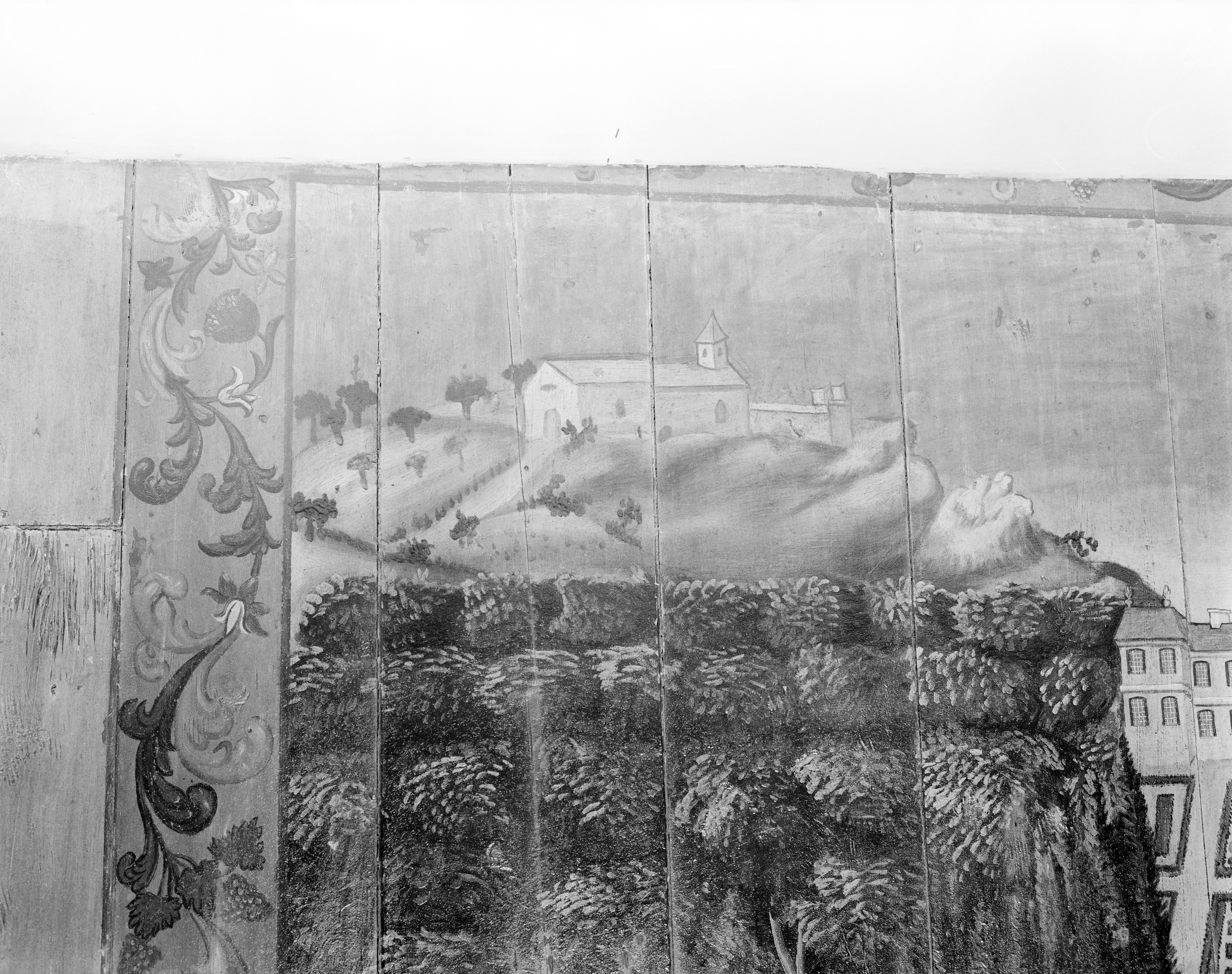 Maison : peintures sur bois, panneau C, détail chapelle à gaucheImmatriculation