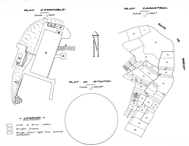 Plan cadastral et plan d'ensemble du fort de l'île Longue (ouvrages détruits en 1966)Immatriculation