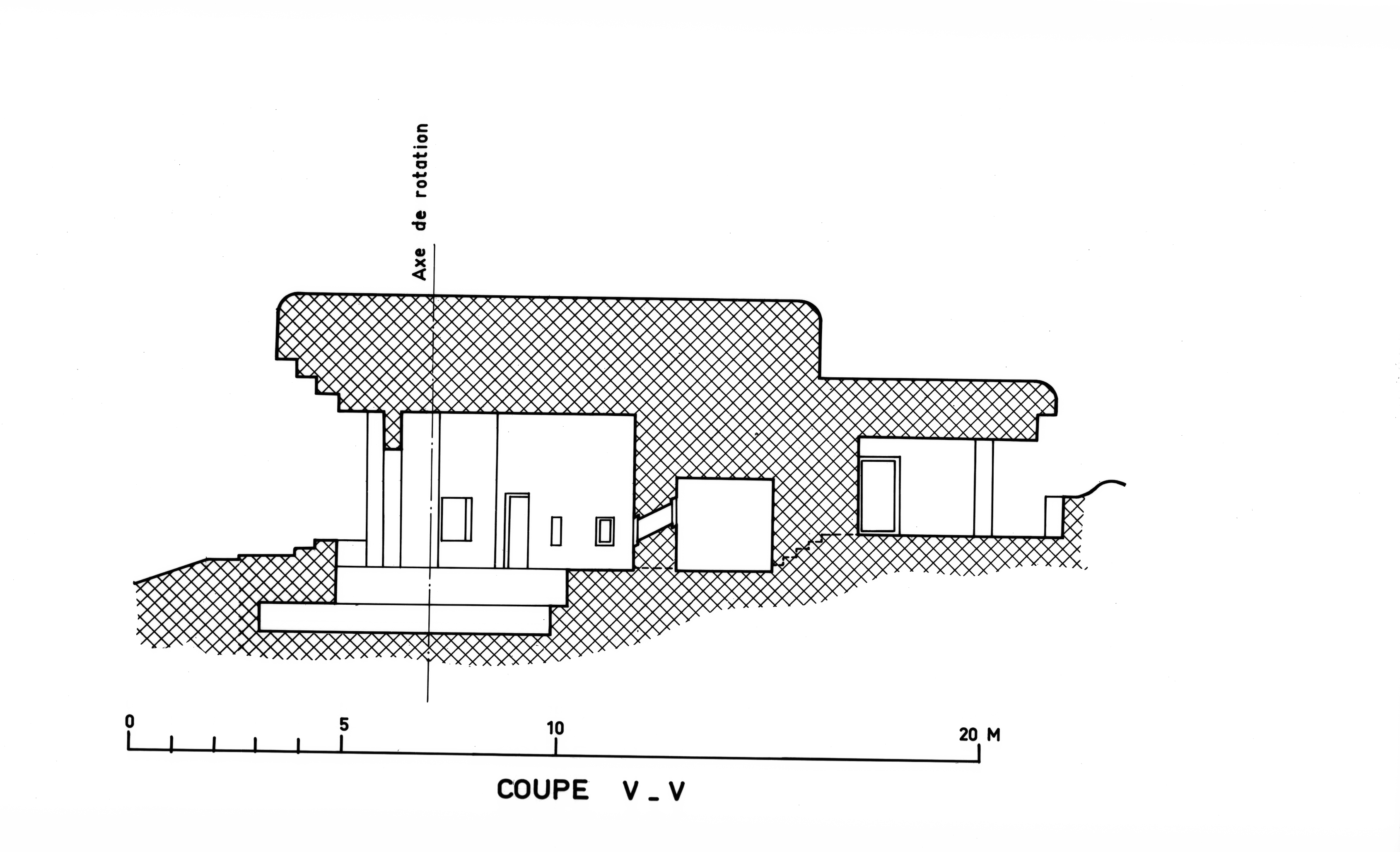 Coupe de l'une des quatre casemates pour canon de 164 mm flanquée d'une pièce de 75 mmImmatriculation