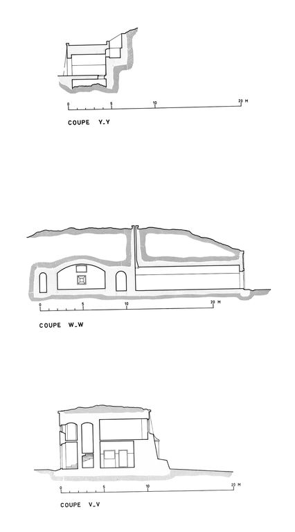 Coupes (Y-Y, V-V et W-W) des casernements (haut et bas)Immatriculation