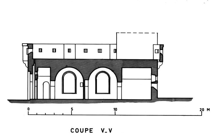 Coupe V-V de la terrasse du corps de garde crénelé n° 3 de RulianecImmatriculation