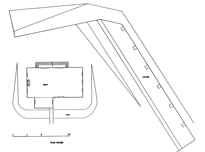 Plan masse de la batterie et du corps de garde crénélé n° 2 de Postolonnec (Coignat)Immatriculation