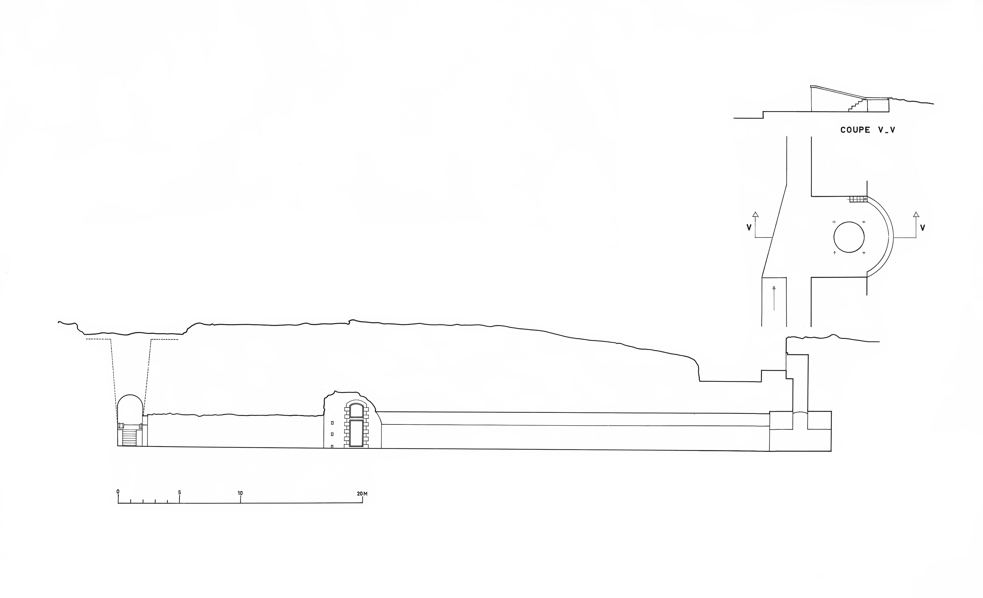 Élévation et coupe V-V de la batterie de mortiersImmatriculation