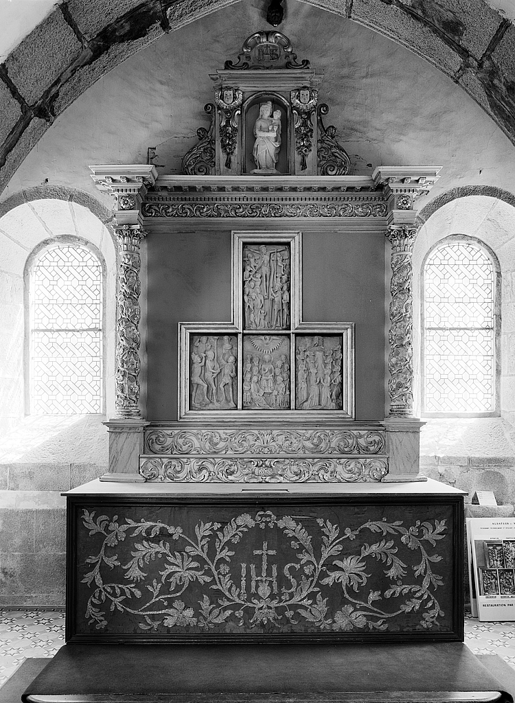 Autel, retable, gradins d'autel (2), devant d' autel (autel secondaire, autel tombeau, retable architecturé), église paroissiale Notre-Dame-de-Croas-Batz (Roscoff),