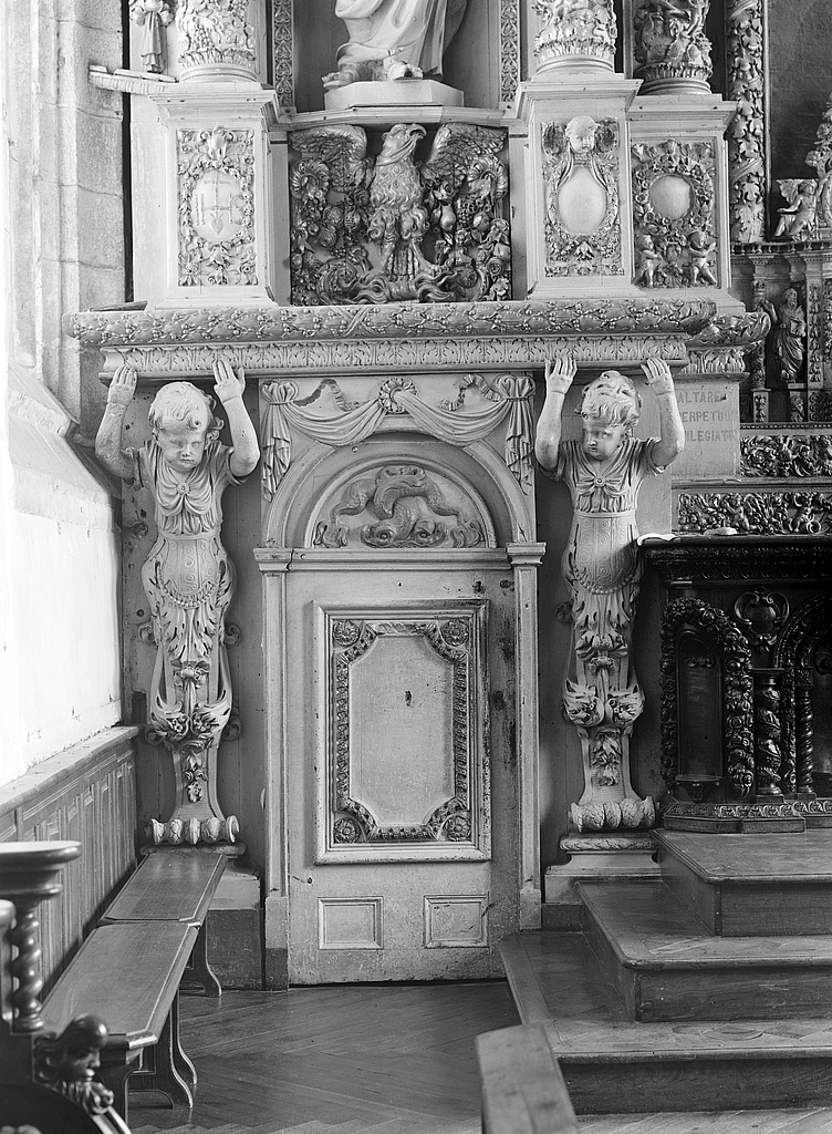 Autel, retable, tabernacle, gradins d'autel (2) (maître-autel, autel tombeau, retable architecturé, tabernacle à ailes), église paroissiale Notre-Dame-de-Croas-Batz (Roscoff),