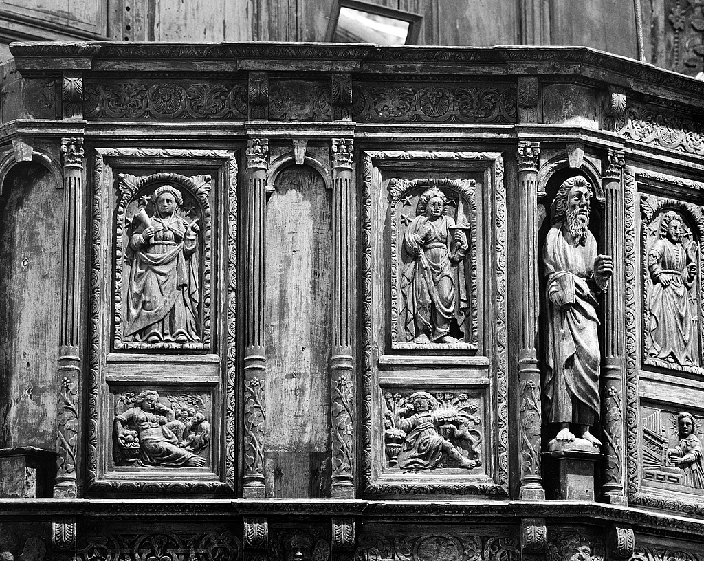 Détail de la tribune, Sybilles Européenne et Cimmérienne et symboles de l'Idôlatrie et de la luxureImmatriculation