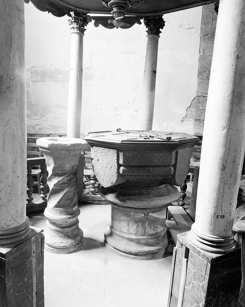 Baldaquin des fonts baptismaux, fonts baptismaux, église paroissiale Notre-Dame-de-Croas-Batz (Roscoff),