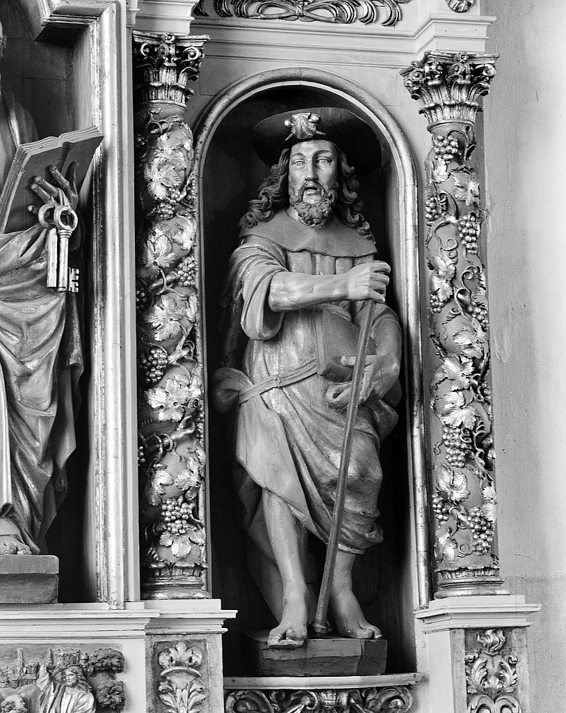 Statue (2, d' applique, petite nature) : saint André, saint Jacques le majeur, église paroissiale Notre-Dame-de-Croas-Batz (Roscoff),