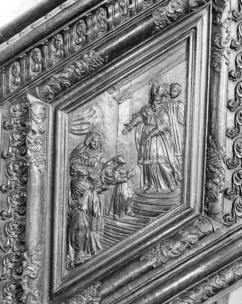 Panneau de la rampe d'escalier, Présentation de la Vierge au Temple.Immatriculation
