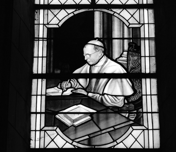 Baie 10 : le pape Pie XII écrivant à sa table, vue générale.Immatriculation