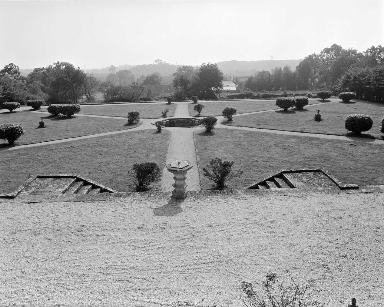 Château, jardin, bassin, escalier, vue vers le sud.Immatriculation
