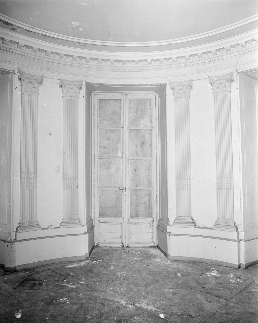 Château, grand salon sud, lambris et fenêtre.Immatriculation