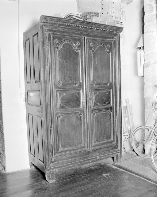 Armoire (Finistère, fleurs, corniche dentelée) vue générale de trois quarts.Immatriculation