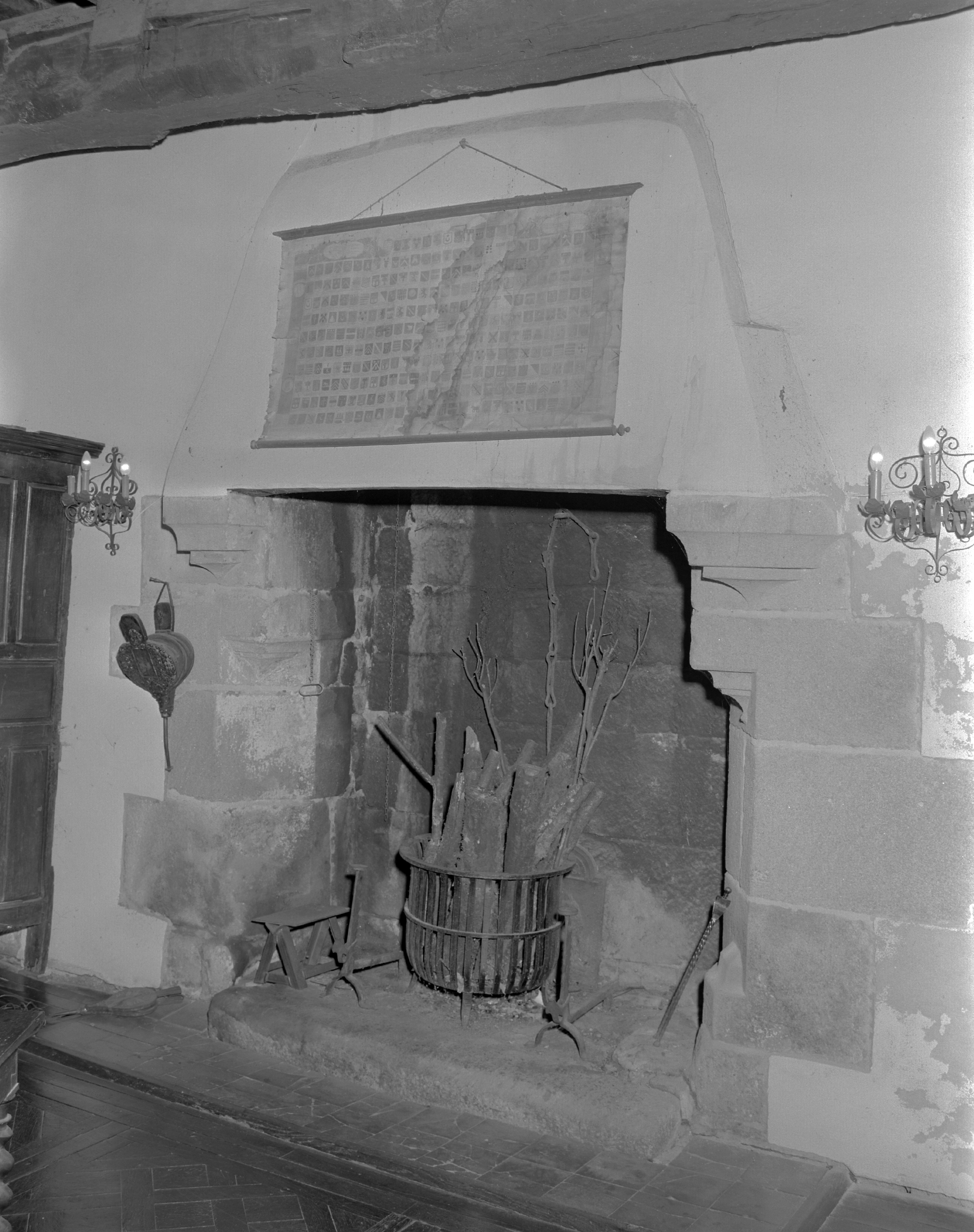 Logis, combles, pièce centrale, mur sud : cheminée.Immatriculation