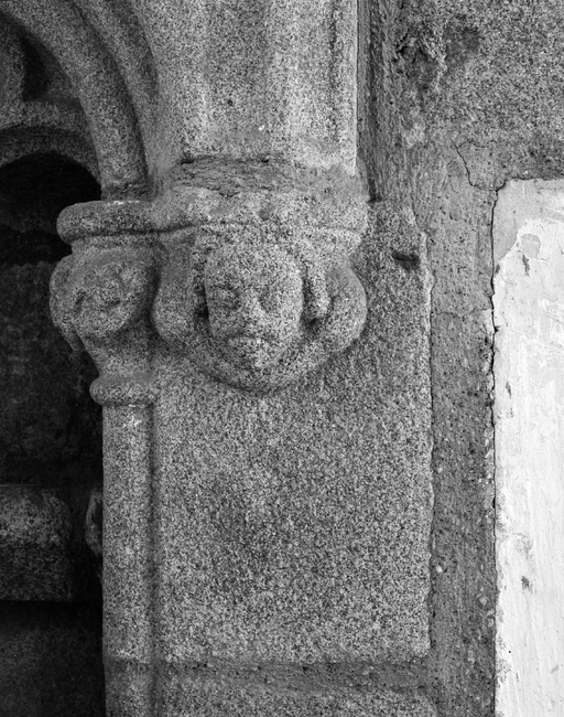 Vue de la chapelle : détail de la crédence liturgique de l'oratoire latéral sud (état en 1989). La crédence affiche un décor gothique flamboyantImmatriculation