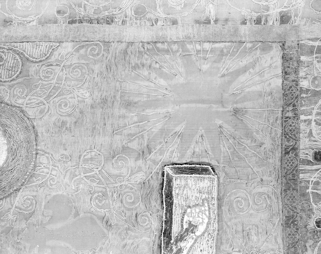 Côté Crucifixion : détail de la représentation du soleilImmatriculation