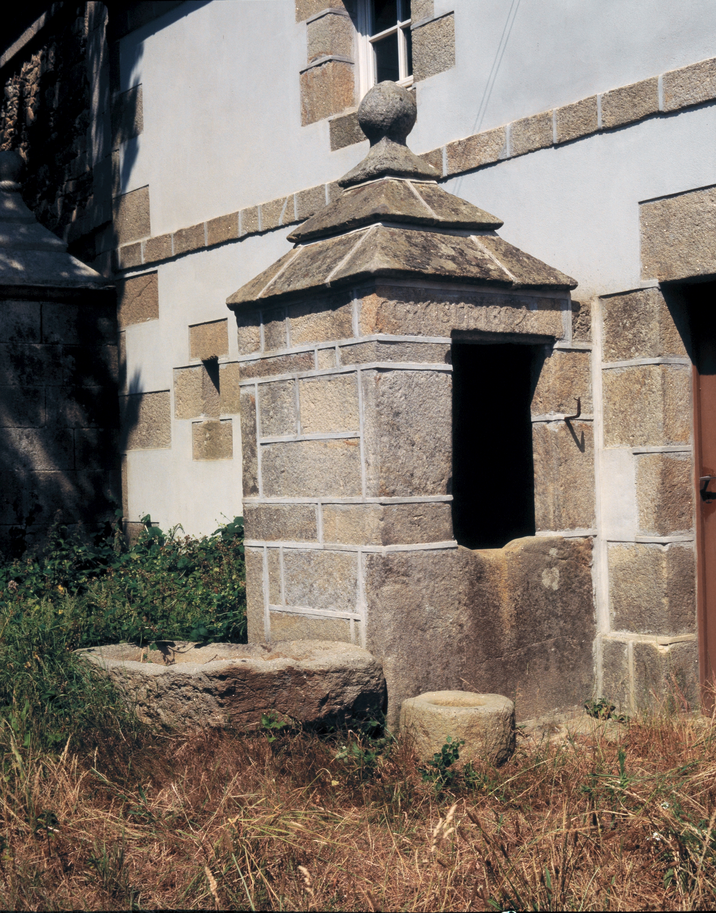 Puit daté 1809 et auge, vue sud-ouest. (1989)Immatriculation
