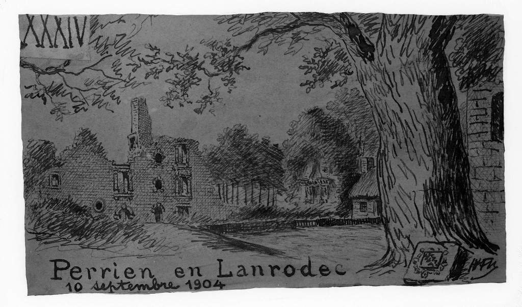 Croquis du château de Perrien en Lanrodec par Henri Frotier de la Messelière, 1904Immatriculation
