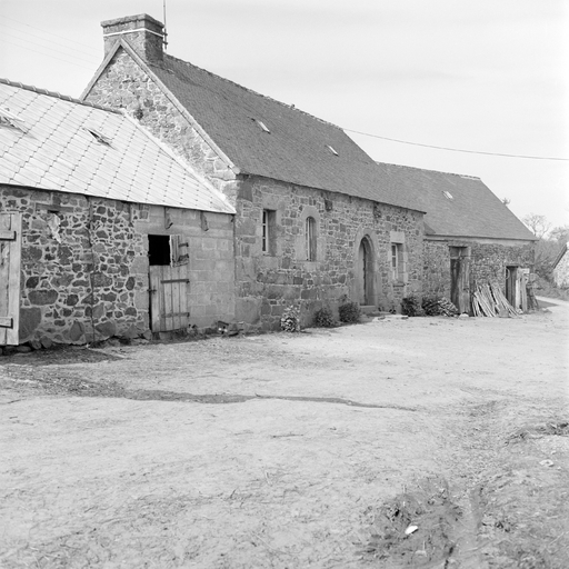 Kernevez-Bré (?) ou Ménez (?) - Ferme, façade principale : vue générale (état en 1974).Immatriculation