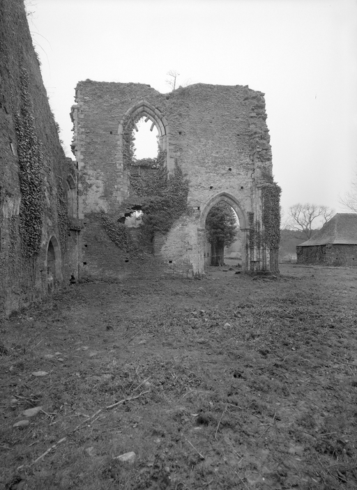 Abbatiale, mur Ouest du bras Sud : vue prise de l'Est (état en 1977).Immatriculation