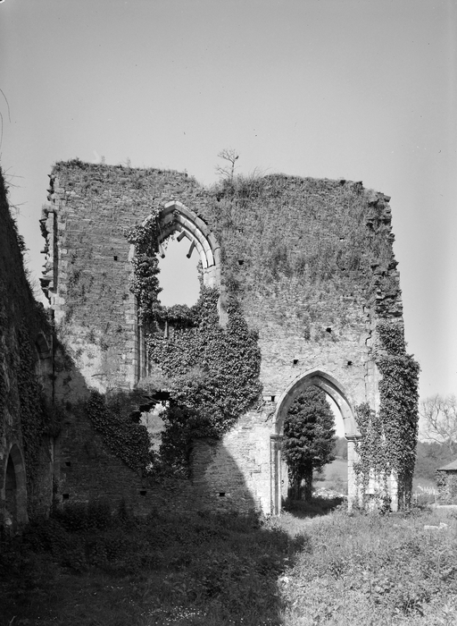 Abbatiale, mur Ouest du bras Sud : vue prise de l'Est (état en 1977).Immatriculation