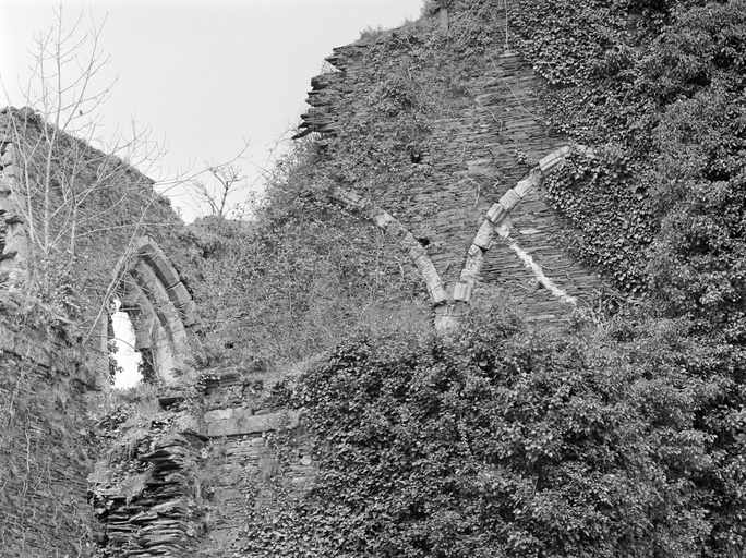 Abbatiale, bras Sud du Transept : arcades murées (état en 1977).Immatriculation