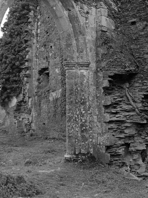 Abbatiale, bras sud, grande arcade : colonne engagée sud (état en 1977).Immatriculation